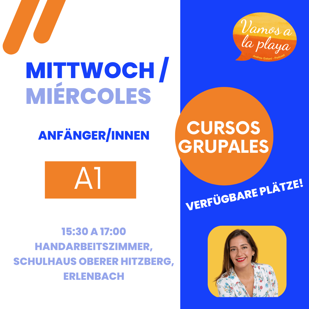 EINSCHLUSS: Muttersprache Lehrerin. Angepasst an deine persönlichen Ziele, alle Unterrichtsmaterialien; Korrektur deiner Aufsätze und Aufgaben sowie persönliche Tipps. Der Unterricht geht im Rhythmus der Gruppe voran und richtet sich nach dem Fortschritt der Gruppe, wie von der Lehrerin beurteilt. Wir verwenden ein Buch als Referenz und Leitfaden. Wir werden uns vertiefend mit kulturellen, grammatikalischen Themen und der Konversation befassen. Dies ist ein Kurs, in dem du Wissen aufbaust und anwendest. Alle zusätzlichen Materialien werden in jeder Lektion von der Lehrerin bereitgestellt. Themen können auf Wunsch wiederholt werden, je nach Absprache mit der Gruppe.